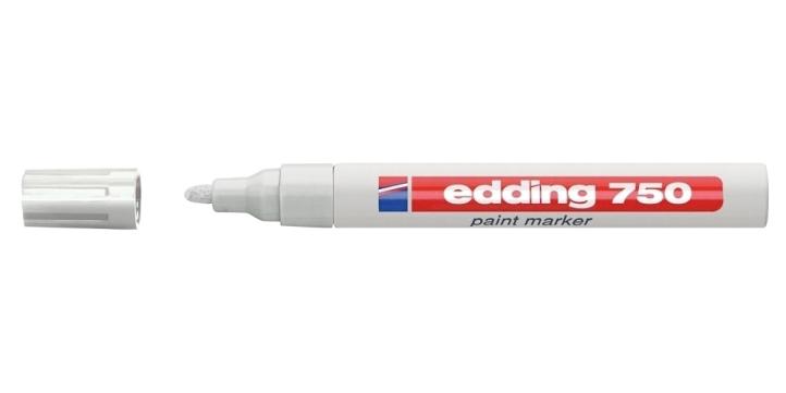 Marker permanent Edding 750, cu vopsea, corp metalic, varf rotund, 2-4 mm, alb