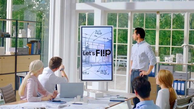 De aceasta data, sitagme ca "exprima-ti creativitatea", " da frau liber imaginatiei" sau "capteaza atentia" sunt in masura sa intalneasca unealta care le poate pune in valoare transformandu-le din concept, in realitate. Samsung Flip este un produs dedicat companiilor si salilor de conferinta. A fost proiectat avand ideea de colaborare intre membrii unei echipe in plin plan. Iti permite sa scrii cu stylusul si sa interactionezi cu un ecran tactil de dimensiuni mari. Dispune de partajare facila, notare, cautarea si repozitionari a informatiei afisata pe ecran. Daca ti-ai dorit sa poti imparti acelasi spatiu interactiv cu inca cateva persoane, ei bine, Samsung Flip permite utilizarea simultana de catre 4 utilizatori.