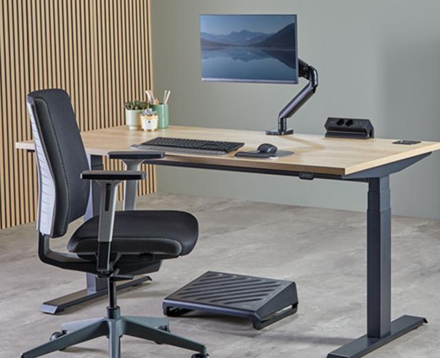 Birou reglabil pe înălțime Levado™ • 4 setări de memorie încorporate • Evitați accidentele cu funcții de siguranță pentru detectarea coliziunilor • Gestionați cu ușurință cablurile cu sistemul ergonomic inclus