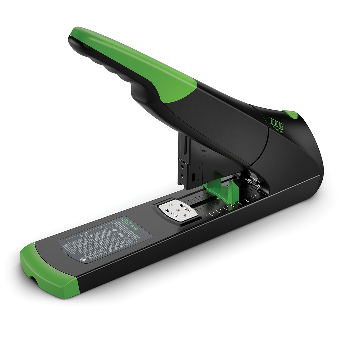 Perforator de birou durabil pentru utilizare grea pentru pana la 140 de coli de hartie cu sistem anti-blocare (ABS) pentru capsare convenabila, fara probleme. Dispozitiv complet metalic in carcasa din plastic.