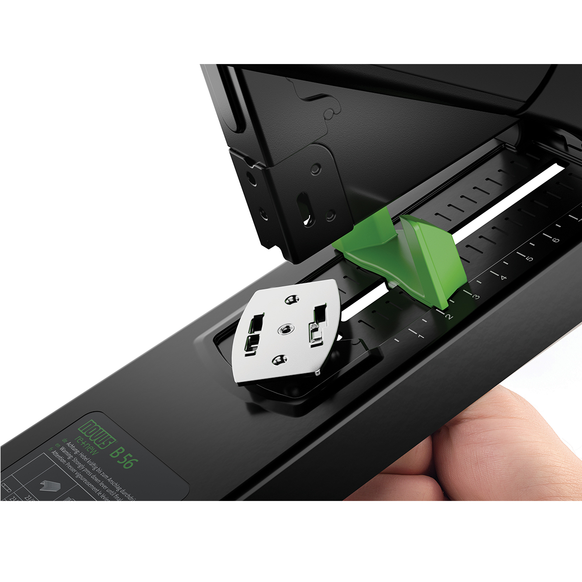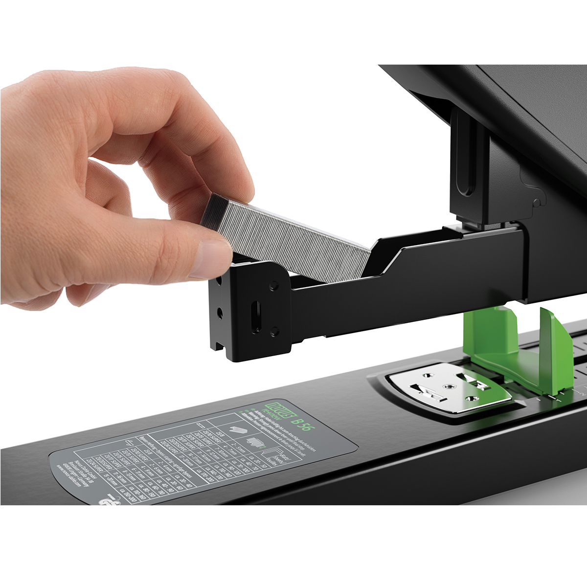 - adancime variabila de patrundere in pagina (pana la 75 mm)- eliminare rapida a erorilor pentru capsarea goala atunci cand este necesar- sistem de incarcare cu buton de apasare cu ghidaj de capse dublu, montat pe arc- nicovala mobila pentru schimbarea rapida intre capsarea paralela si bypass