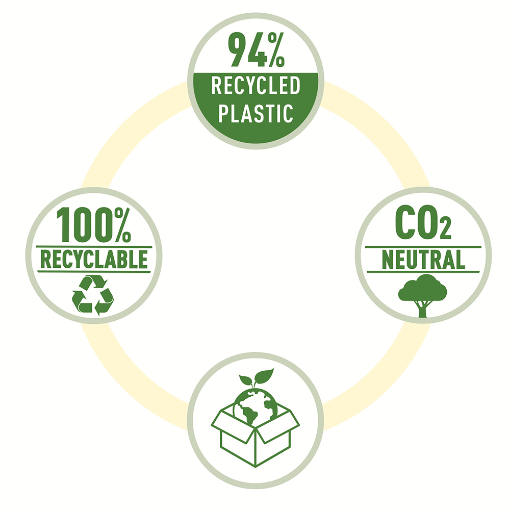 Capsator robust, din plastic, pentru utilizare zilnica, fabricat din materiale reciclate (post-consum). Cu impact neutru asupra mediului si reciclabil 100%, putand fi demontat si valorificat complet.