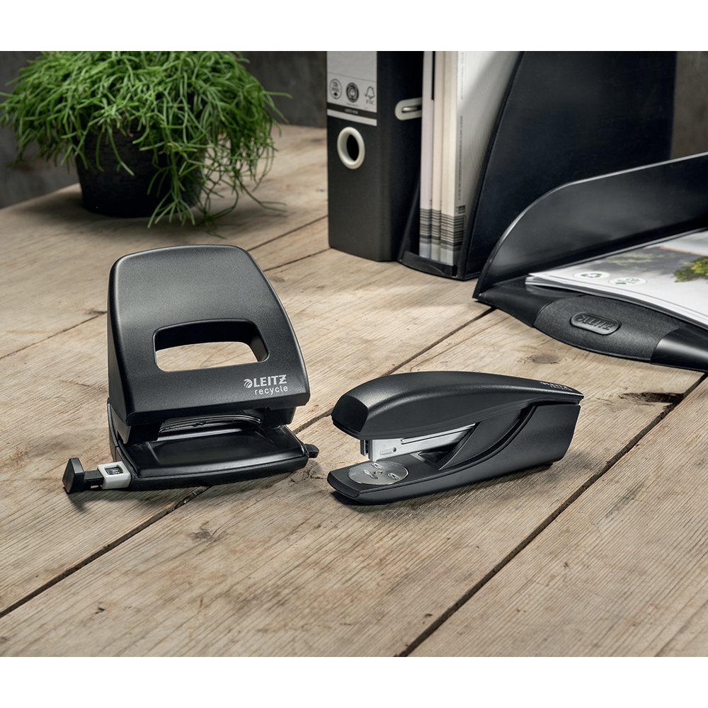 Capsator robust, din plastic, ideal pentru utilizarea zilnica, fabricat din materiale reciclate, asigurand un impact neutru asupra mediului. Este reciclabil 100%, putand fi demontat si valorificat complet. Tehnologia patentata Direct Impact si capsele Leitz Power Performance P3 (24/6, 26/6) asigura o capsare precisa si fara efort. Designul modern si contemporan arata grozav atat acasa, cat si la birou, completand perfect gama de produse Recycle de la Leitz.