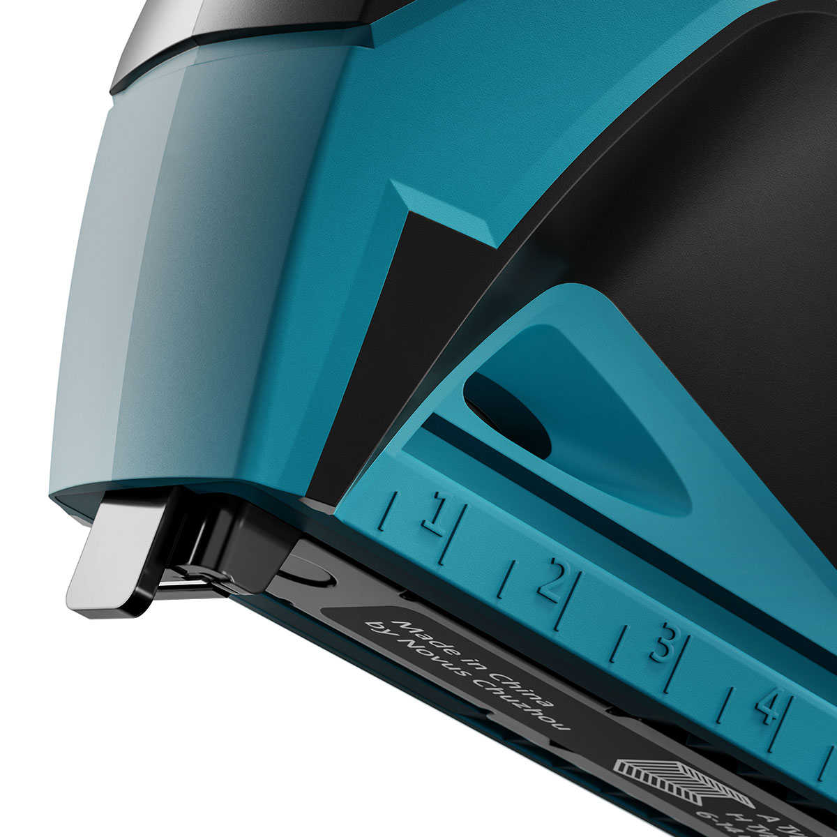 Mecanism de incarcare inferioara, cu impingator de capse integrat, pentru reincarcare rapida; toate componentele sunt fixate in capsator si nu se pot pierde