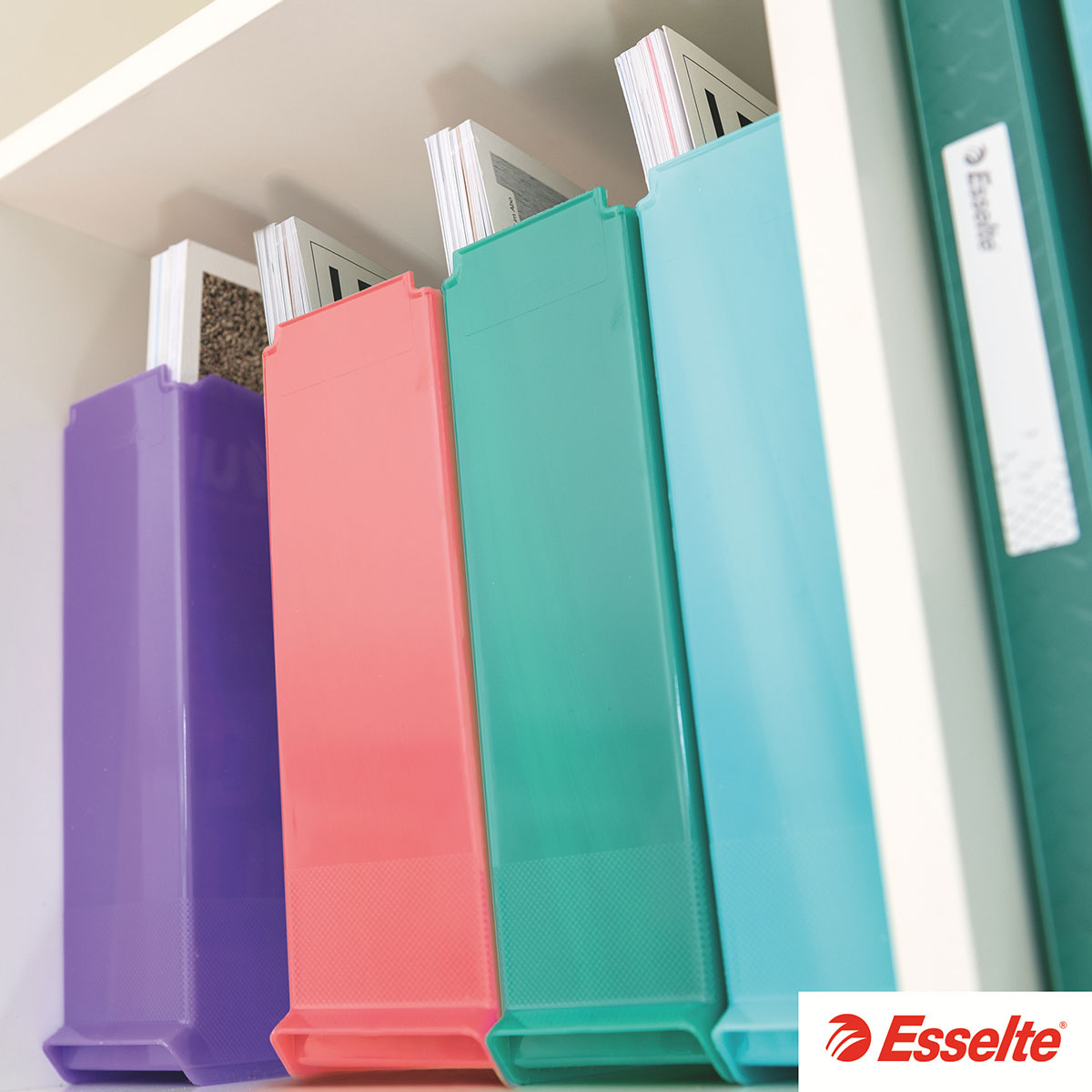 Suportul vertical Esselte Colour'Breeze, pentru documente, PS, A4 este conceput pentru a depozita cataloage, reviste, brosuri si documente. Ideale pentru a fi utilizate pe birouri sau rafturi, aceste suporturi transparente pentru dosare de reviste au o inaltime redusa a coloanei vertebrale pentru a pastra continutul vizibil si usor de accesat. Disponibil intr-o selectie de culori vibrante si finisat in designul proaspat si modern Colour'Breeze in relief. O briza proaspata in viata ta!