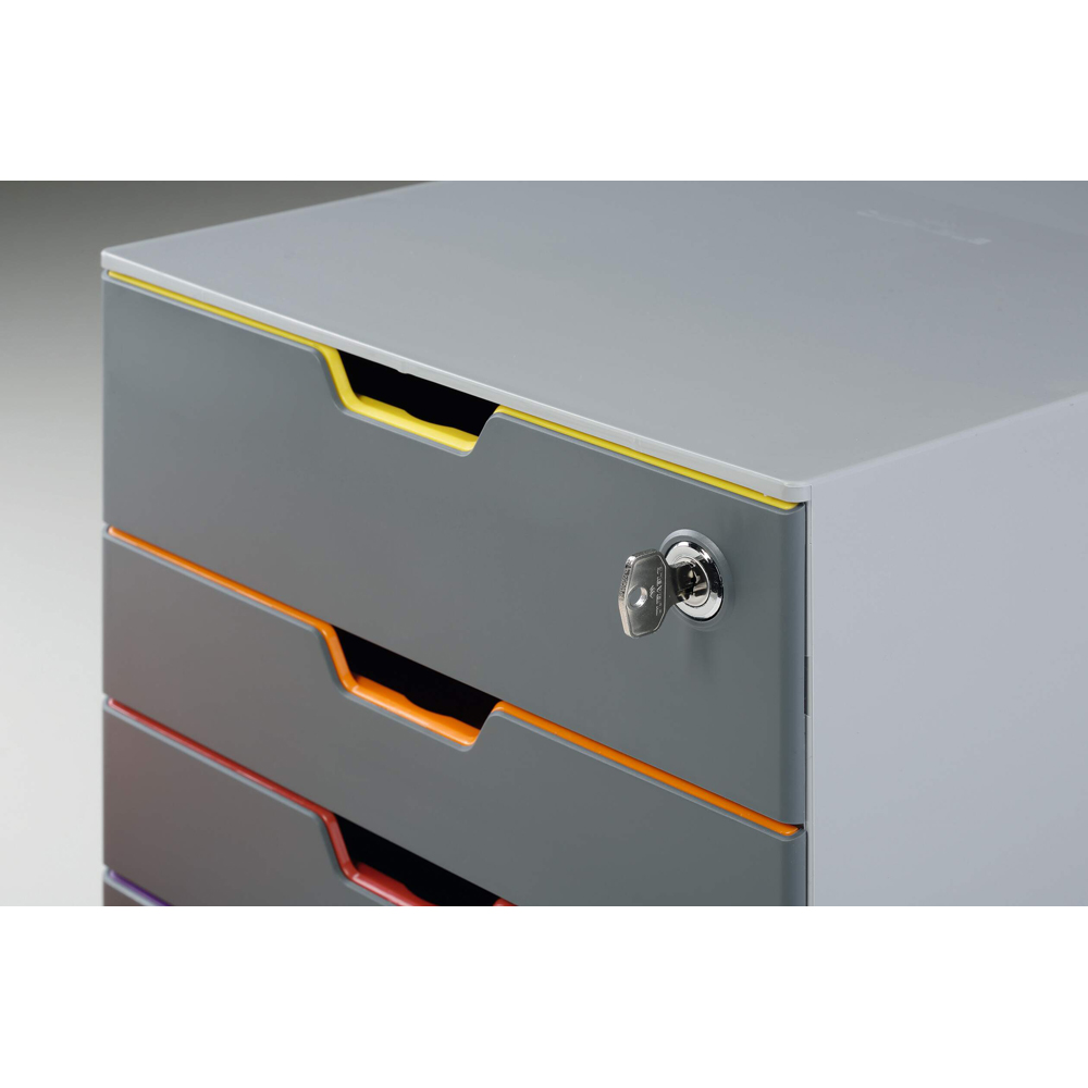 Organizator practic cu sertare, conceput pentru o arhivare si o organizare mai usoara la birou. Sertarele in 4 culori diferite ajuta la orientare si sortare rapida a documentelor.