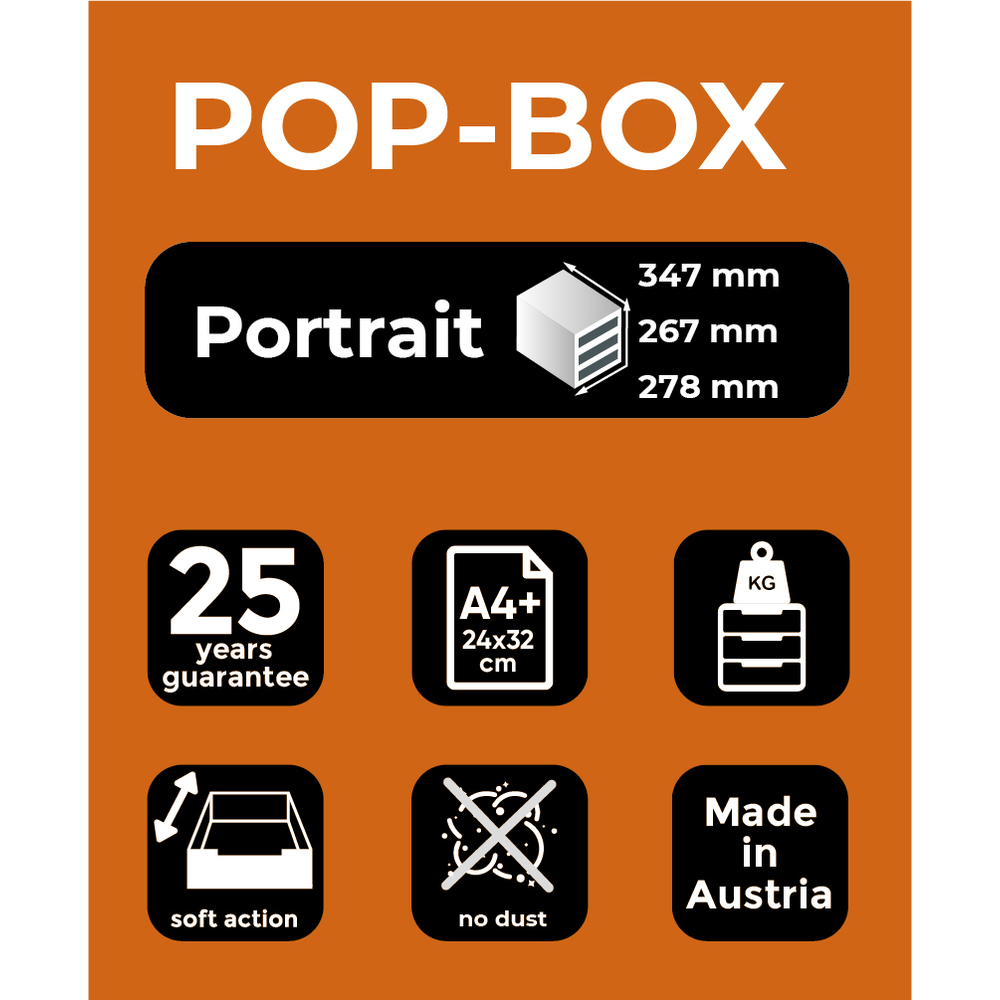 Cutie organizare Pop-Box A4+ cu 4 sertare, 347x278x267mm: