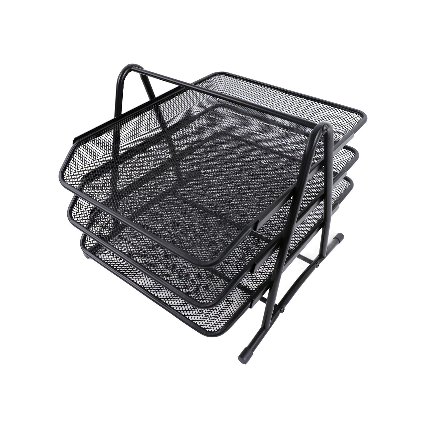 Acest set de 3 tavite pentru documente este perfect pentru organizarea eficienta a biroului tau. Confectionate din metal negru cu design mesh, aceste tavite nu doar ca adauga un aspect modern spatiului tau de lucru, dar sunt si extrem de functionale.