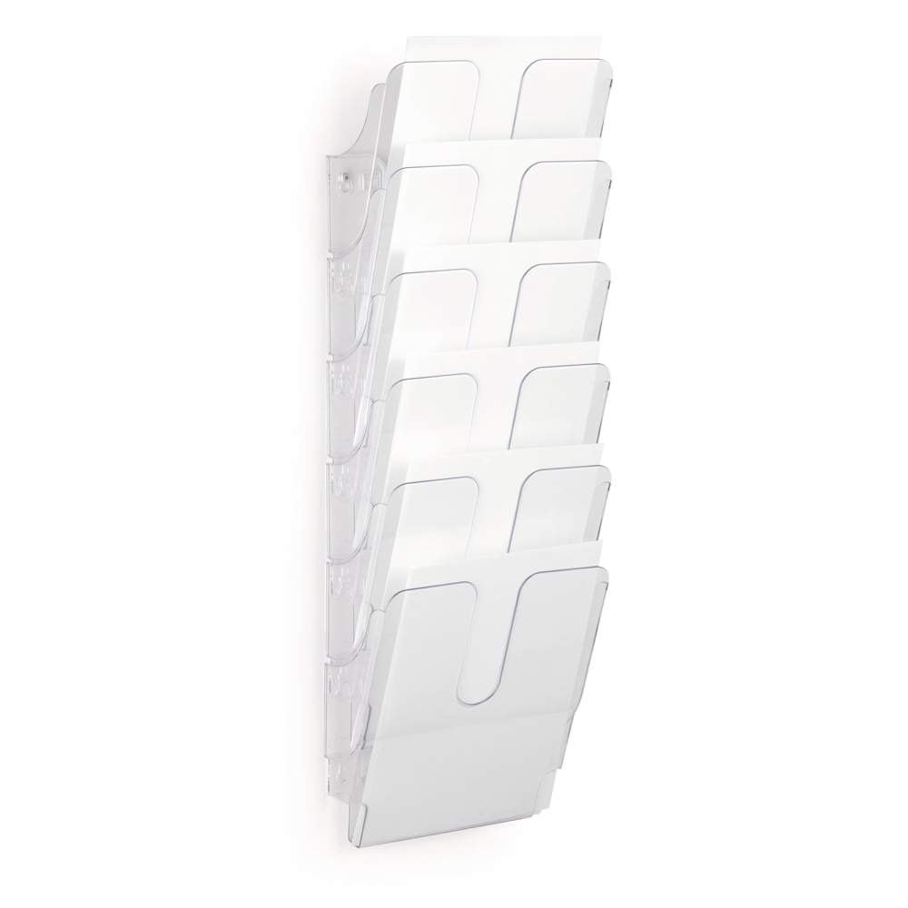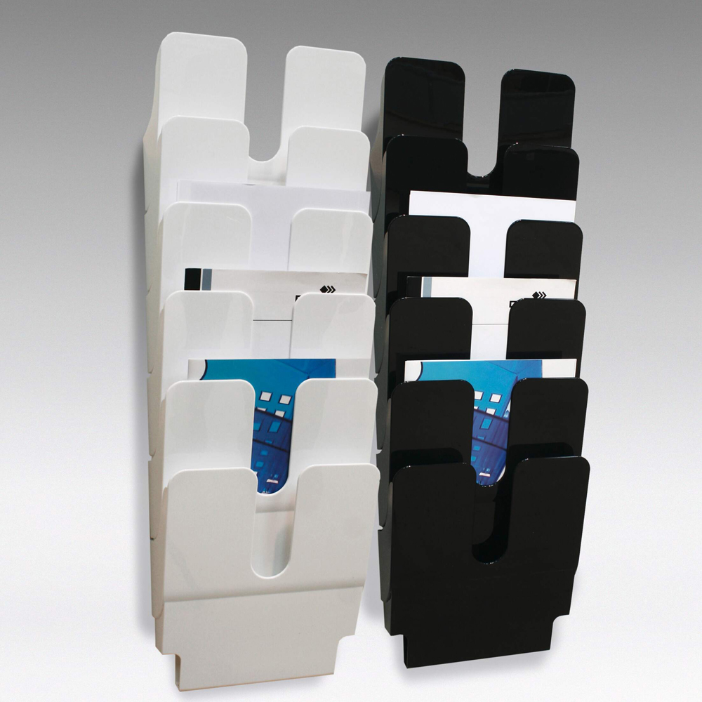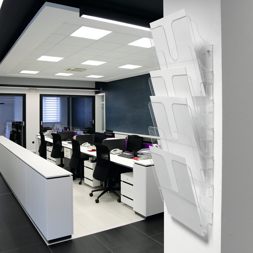 Suport de literatura pentru montaj pe perete, conceput pentru expunerea ordonata a materialelor informative in format A4 portret. Este potrivit pentru zone cu trafic, unde ai nevoie de acces rapid la pliante, brosuri sau foi de informare.