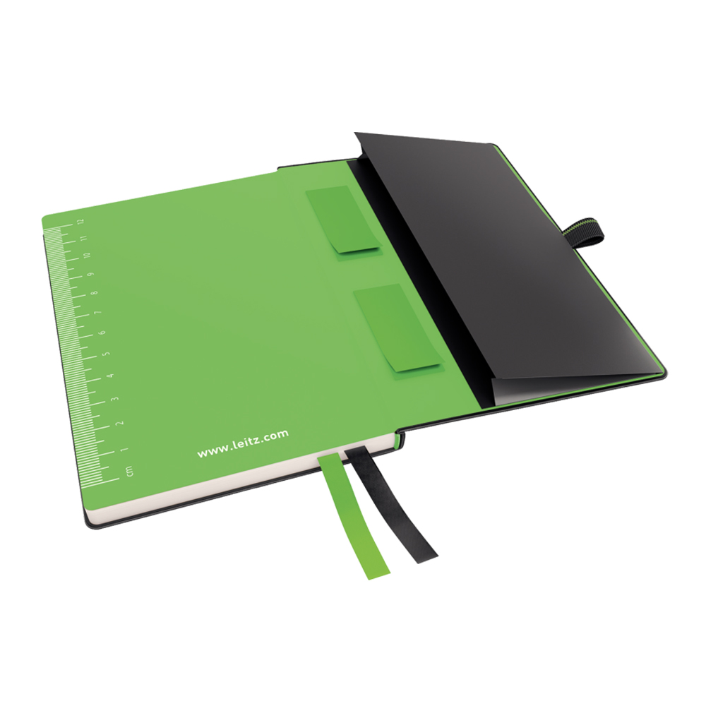Perfecte pentru profesionistii mobili. Disponibile in format A5, A6 sau dimensiune iPad. Cu coperta solida, tip agenda. Prevazute cu inchidere cu banda elastica. Coperta atragatoare, solida, finisaj cu aspect de piele. Buzunare interioare pentru diverse documente. Rigla imprimata pe coperta din spate. Ultimele 8 pagini sunt pre-perforate, pentru rupere usoara. Inchidere cu banda elastica pentru protectia filelor, 2 seturi de indecsi adezivi pentru semnalizarea continutului important, suport pentru instrumentul de scris. 80 de file, hartie de inalta calitate, de culoare ivory. Gramaj: 100 g/m², certificata FSC.