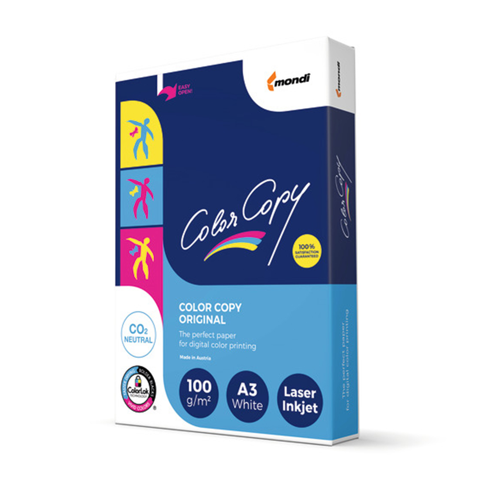 Color Copy este lider pe piata hartiilor digitale pentru o gama larga de utilizari, acreditat FSC. Produs cu amprenta de carbon zero, Color Copy ofera clientilor un avantaj de mediu suplimentar. Prin achizitionarea Color Copy aveti un rol activ in reducerea emisiilor de carbon si combaterea efectelor negative care cauzeaza schimbari climatice. Color Copy este prima hartie de pe piata tiparului digital ce a primit acreditarea internationala Forest Stewardship Council (FSC). Logo-ul FSC identifica produsele ce contin lemn din padurile administrate responsabil. Gramaj 100 g/mp. Numar coli/top 500.