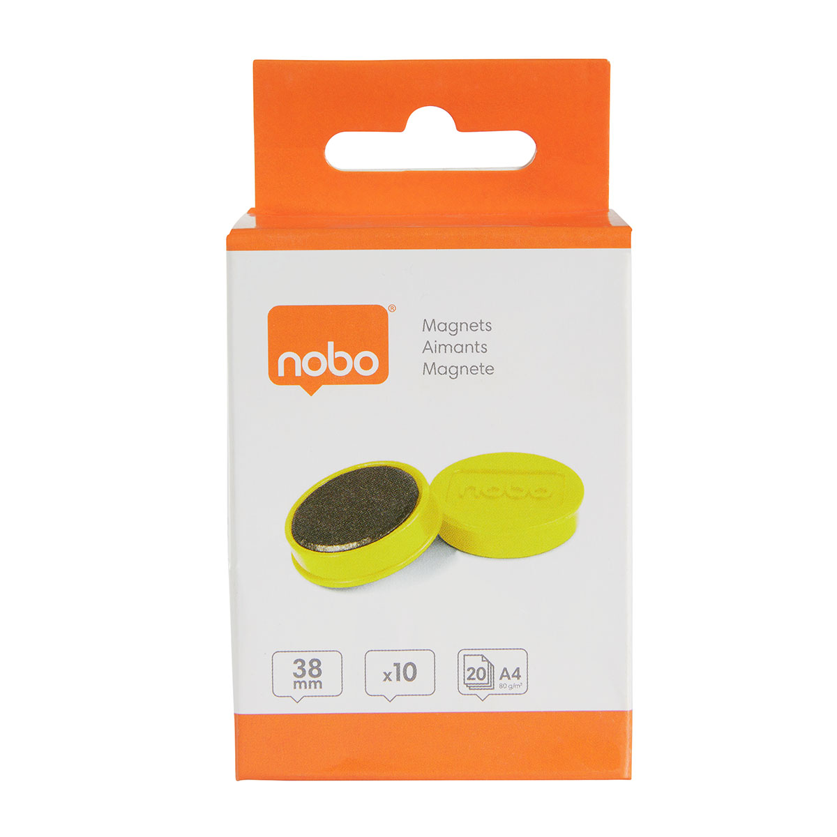 Magneti pentru table NOBO, diametru 38 mm, sustin 20 coli, 10 bucati/set, galben