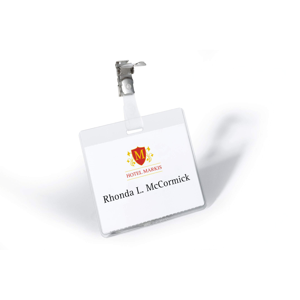 Decupajul pentru clips permite combinarea cu lant, rola pentru ecuson sau cordon textil. Etichetarea se poate face usor cu software-ul gratuit DURAPRINT® (cu functie de baza de date), disponibil la www.duraprint.de.
