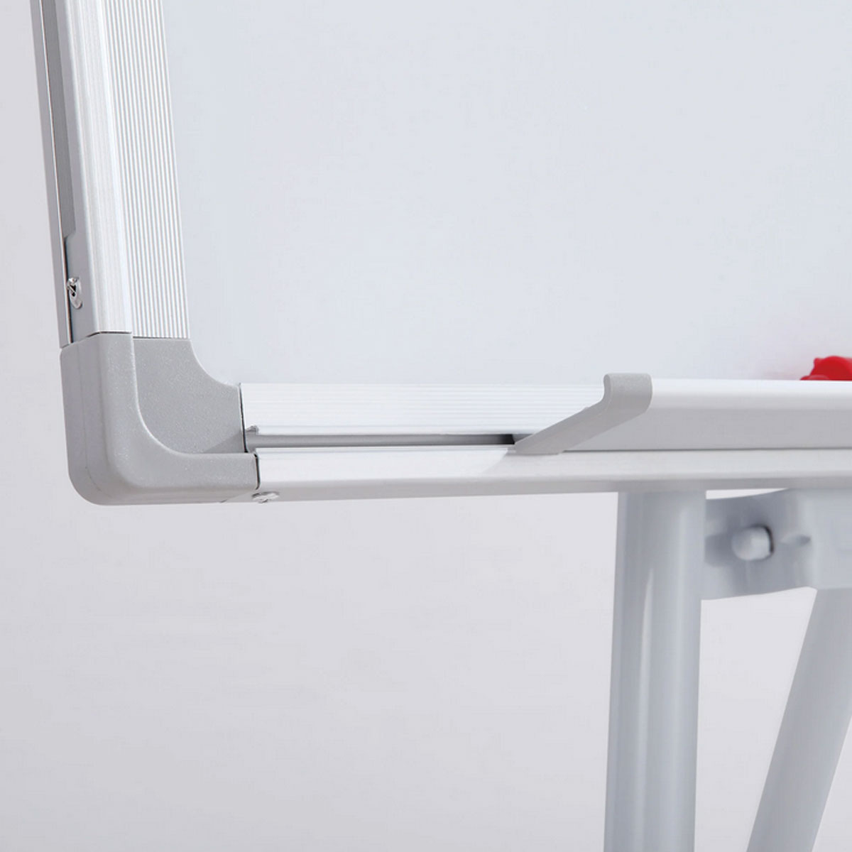 Flipchart usor de transportat, prevazut cu suprafata magnetica si brate laterale extensibile. Are un cadru usor din aluminiu si permite reglarea atat a inaltimii, cat si a inclinarii, pentru o utilizare cat mai confortabila.