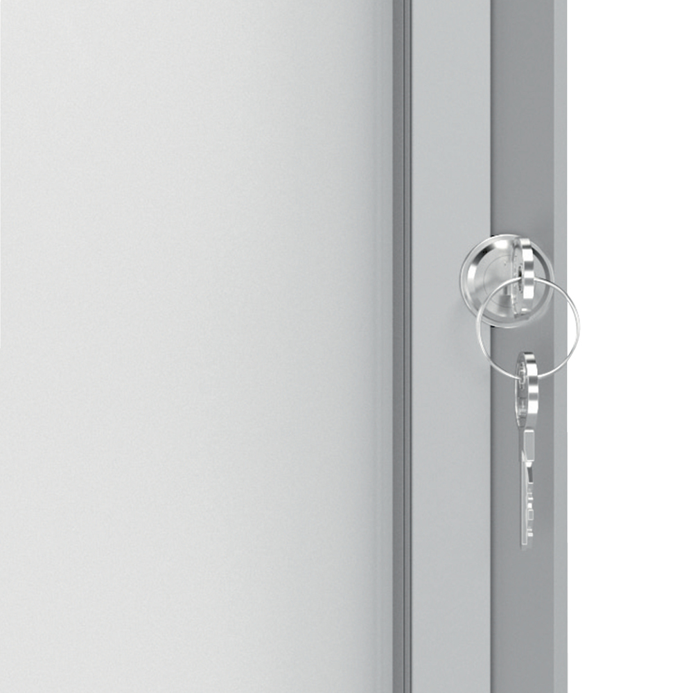 Avizier Nobo magnetic, cu carcasa pentru exterior si cu suprafata de stergere uscata. Sticla securizata are 4mm grosime, pentru mai multa siguranta. Este perfect pentru afisarea oricaror documente, indiferent de vreme. Acest avizier este destinat pentu uz exterior, pastrandu-ti documentele in siguranta si uscate. Optimizat pentru mai multe docmente A4. Accesoriile pentru montarea pe perete, cat si cele doua chei pentru securizare sunt incluse. 6XA4. 752x692x45mm - dimensiuni exterioare.