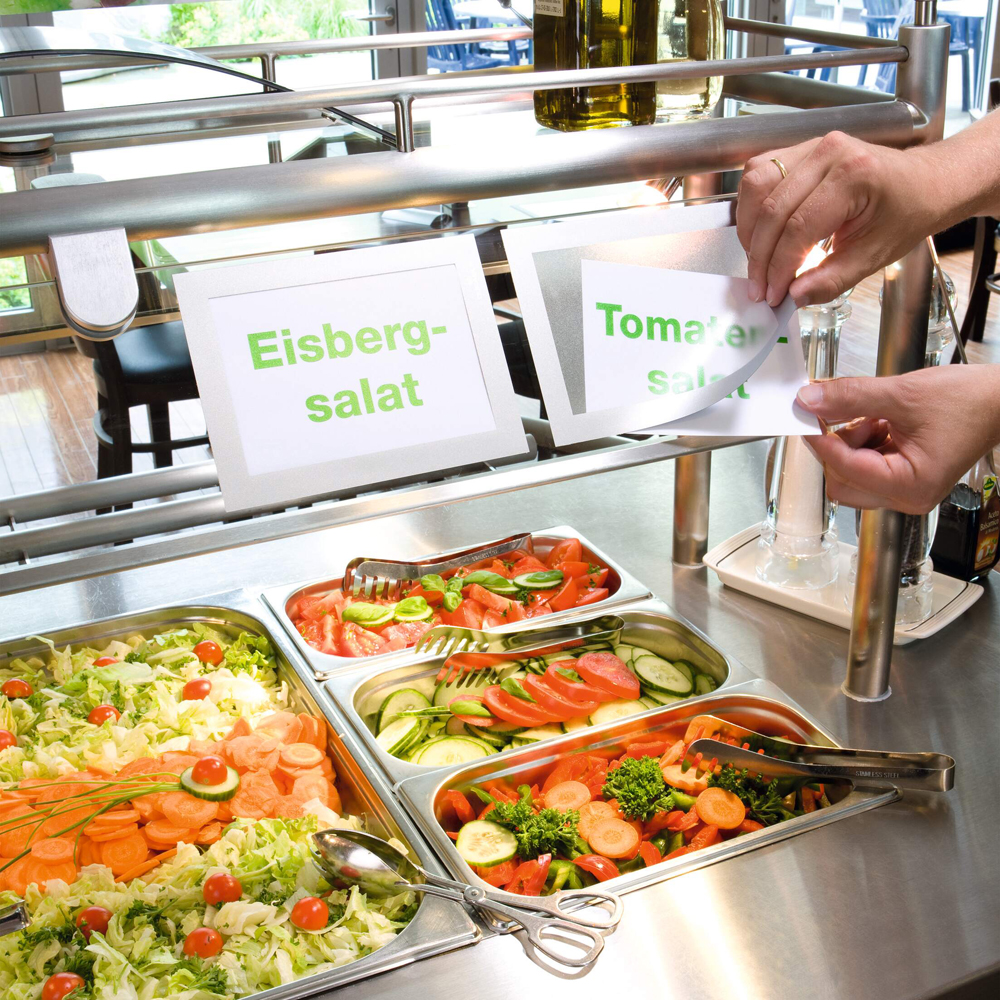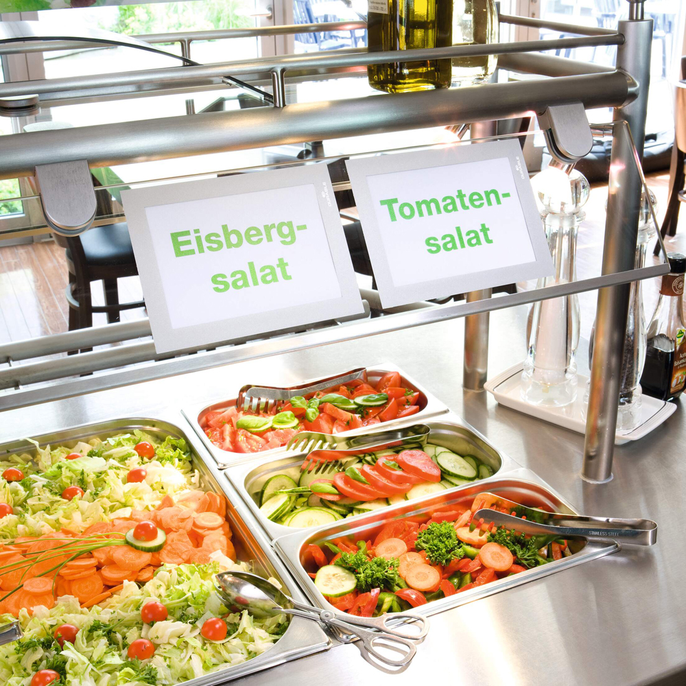 Se fixeaza usor pe suprafete netede si stabile, fara unelte, si poate fi indepartata ulterior (de exemplu de pe sticla). Ofera lizibilitate din ambele parti ale sticlei datorita celor 2 inserturi incluse.