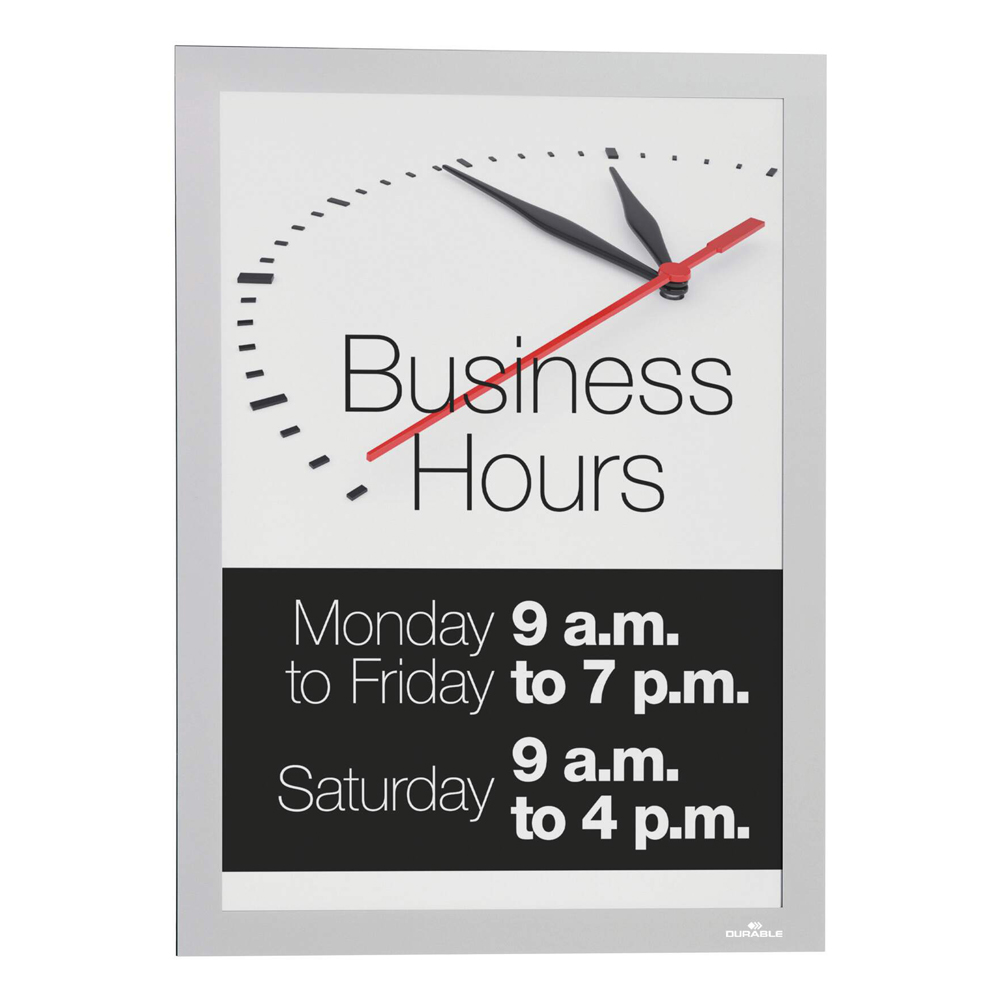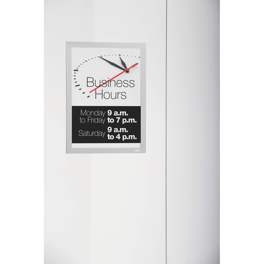 Documentele se introduc si se inlocuiesc rapid datorita cadrului magnetic cu deschidere pe balama. Recomandata pentru afisarea la fereastra a informatiilor precum programul de lucru sau oferte speciale, inclusiv pe sticla expusa direct la lumina solara.