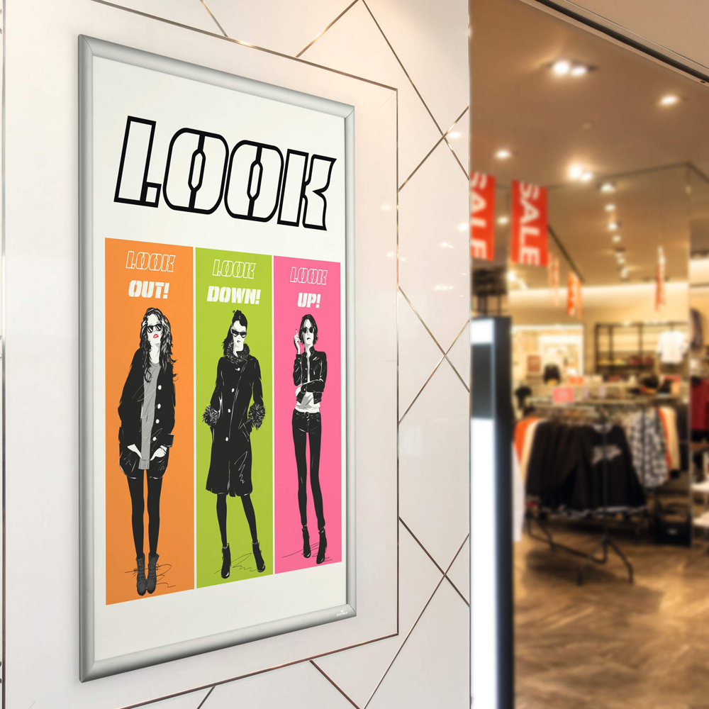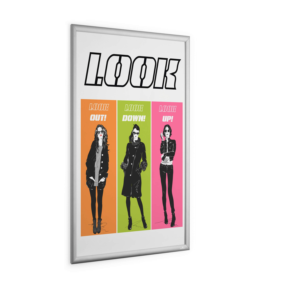 Rama click robusta din aluminiu, conceputa pentru afisaje care necesita schimbarea rapida si usoara a motivului, prin tehnica de pliere tip snap frame. Este potrivita pentru utilizare pe perete, oferind un aspect curat si o protectie buna a afisului.