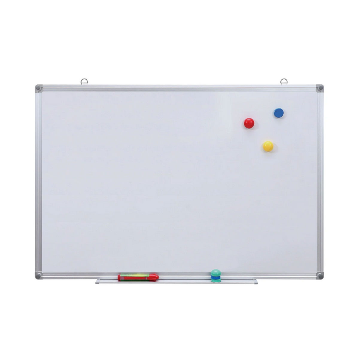 Tabla magnetica alba, cu suprafata metalica lacuita, special conceputa pentru scriere cu markere pentru whiteboard. Este o solutie practica si eleganta pentru spatii educationale, profesionale sau pentru uz casnic.