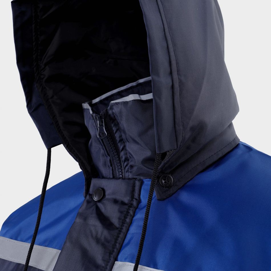 Costum de lucru vatuit STENSO COLLINS pentru sezonul rece, format din jacheta si pantalon tip pieptar, in culoare bleumarin. Conceput pentru confort si protectie in timpul activitatilor in medii cu temperaturi scazute, setul include elemente reflectorizante pentru vizibilitate sporita.