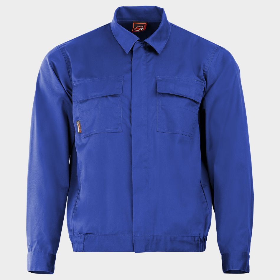 Jacheta de protectie STENSO PLUTON in culoare albastru royal, cu croi drept si inchidere cu fermoar. Este prevazuta cu buzunare pe piept cu clapete si mansete reglabile cu nasture, fiind potrivita pentru utilizare in diverse activitati de lucru.