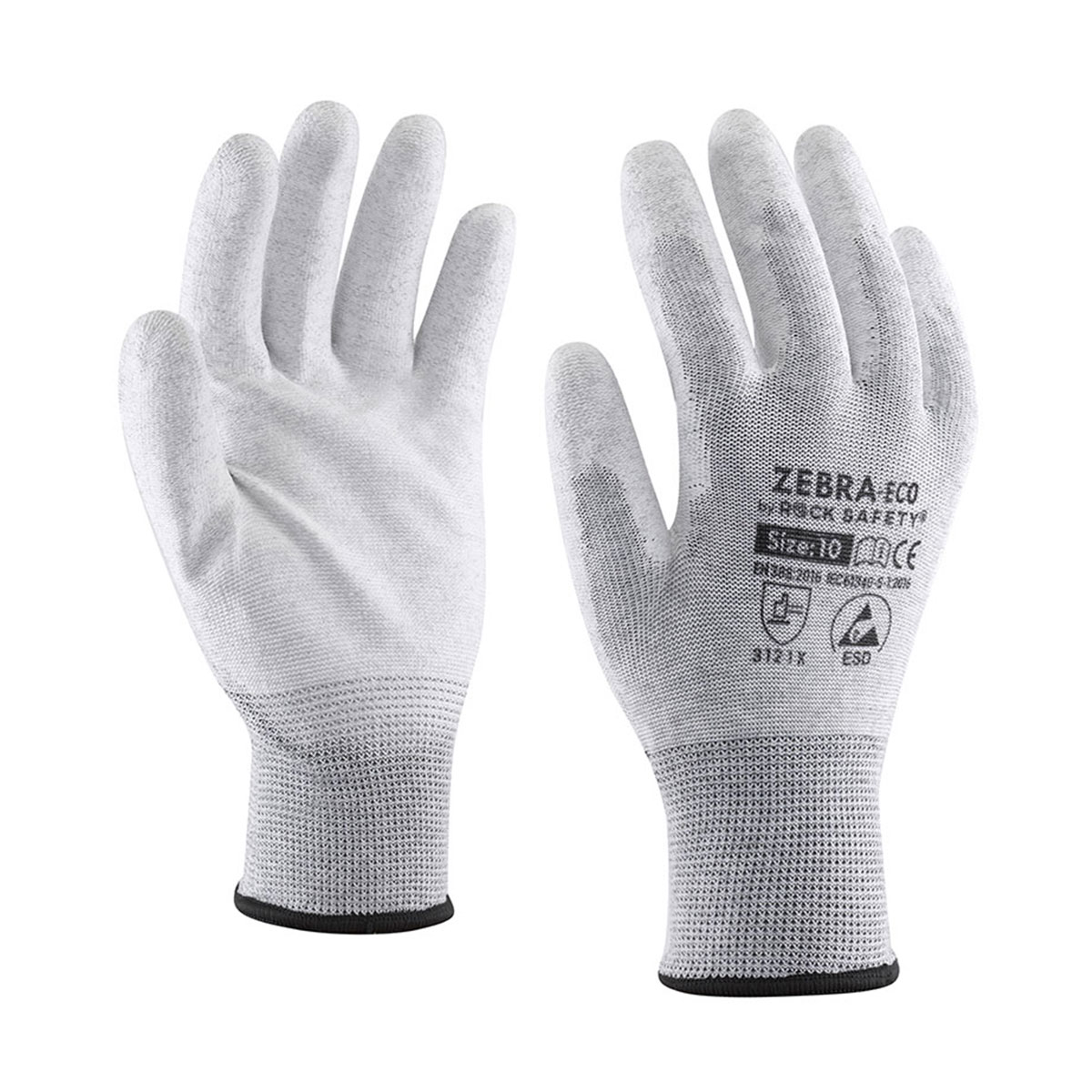Manusi ESD Zebra-Eco, palma imersata PU, marimea 7