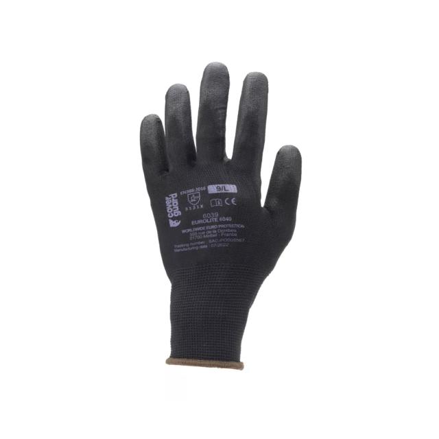 Manusi protectie imersate, Eurolite 6040, negre, marimea 8. Manusi cu imersie PU pe palma, realizate din poliester, culoare: negru.