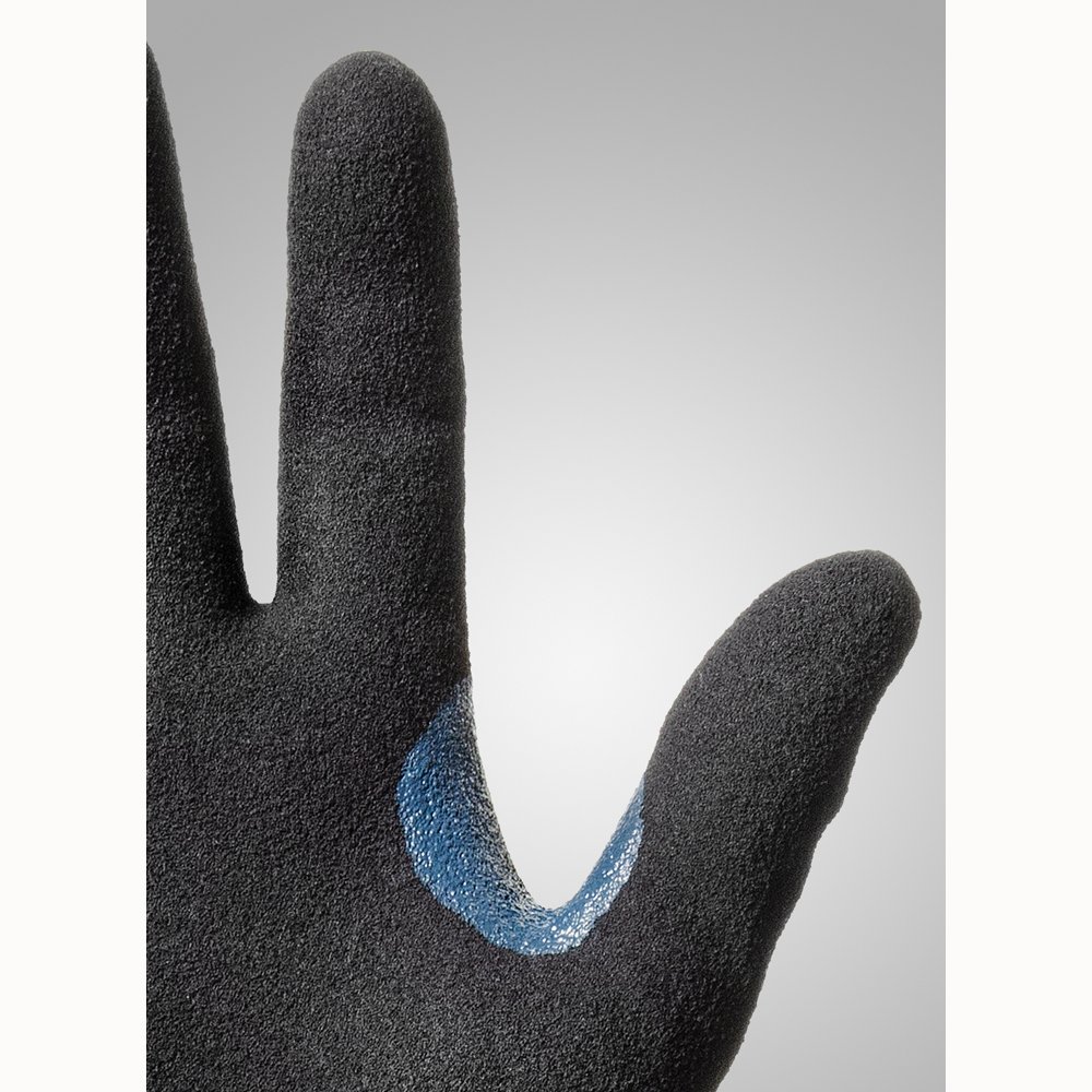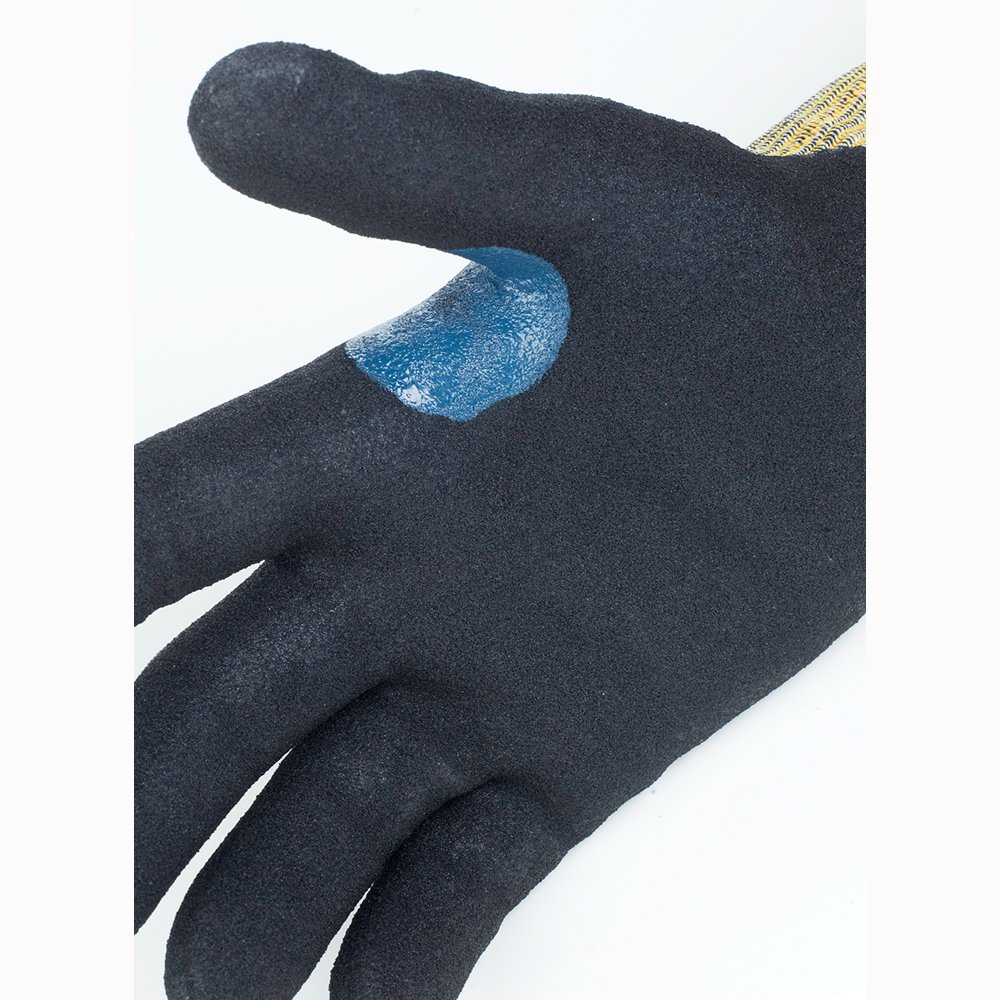 Manusa rezistenta la taiere, spuma de nitril, PU pe palma, zona de prindere din spuma, nivel de rezistenta la taiere D, 15 gg, tehnologie CRF, fir din fibra de sticla, nailon, spandex, Cat. II, rezista la caldura de contact pana la 100 ° C, fara DMF (DMFa), proiectat anatomic, pentru lucrari de asamblare