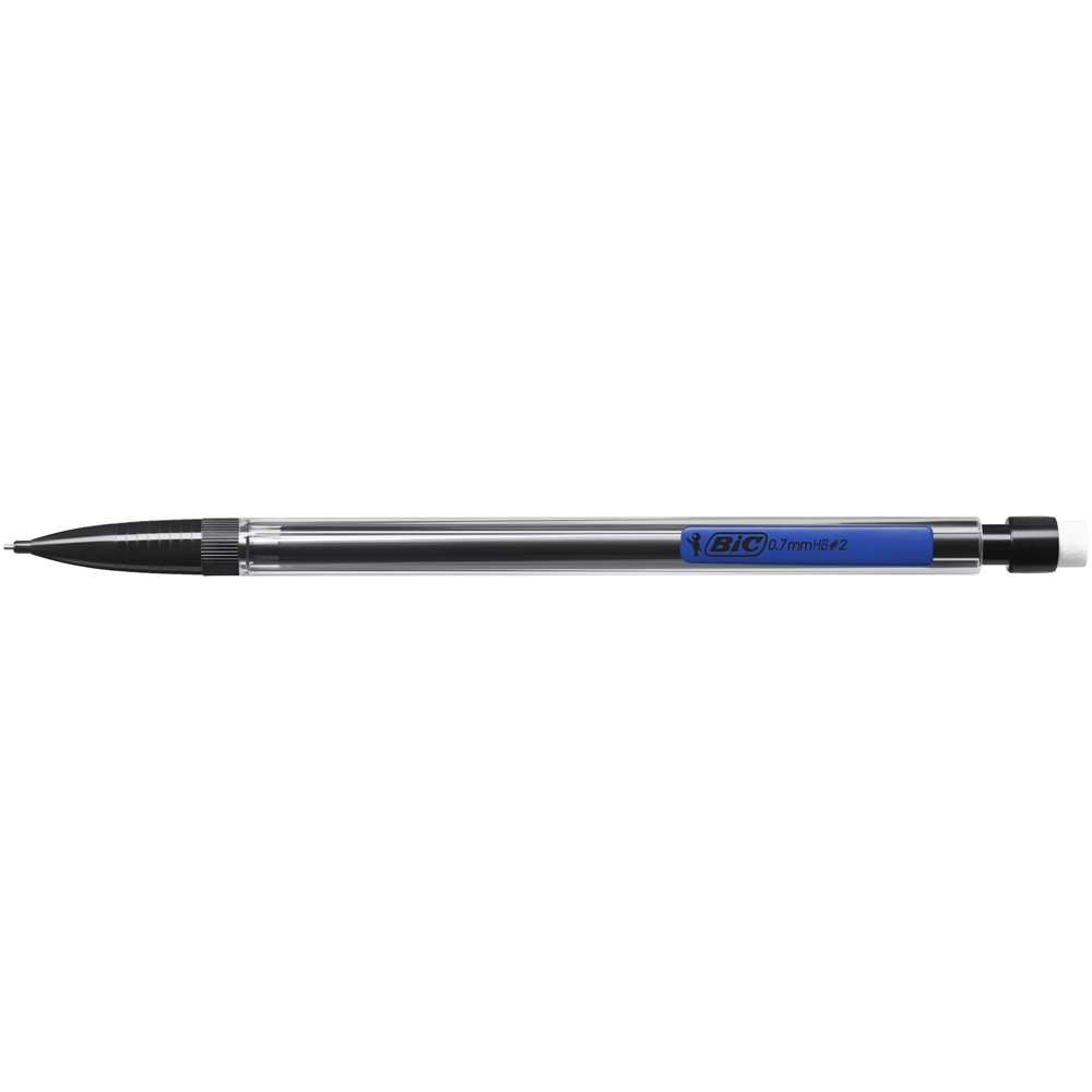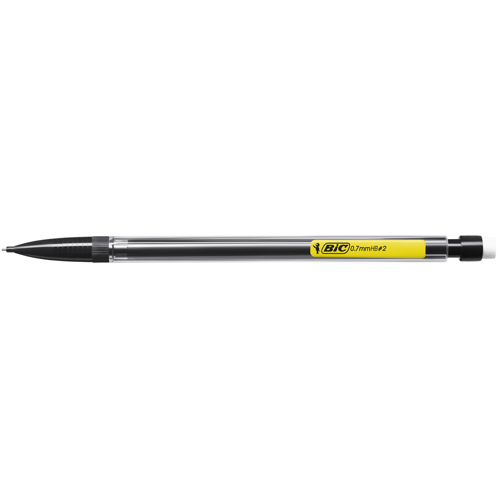 Creion mecanic BIC Matic Classic varf 0.7 mm, corp negru, clip portocaliu, albastru, rosu, galben, verde, mina HB, radiera in capat