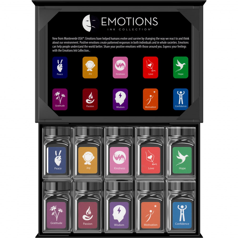 Descopera colectia Emotions de la Monteverde, un set impresionant de 10 calimari cu cerneala asortata, fiecare avand un volum de 30 ml. Acest set este conceput pentru a aduce o experienta unica de scriere, fiind ideal pentru pasionatii de stilouri si cei care apreciaza arta caligrafiei.