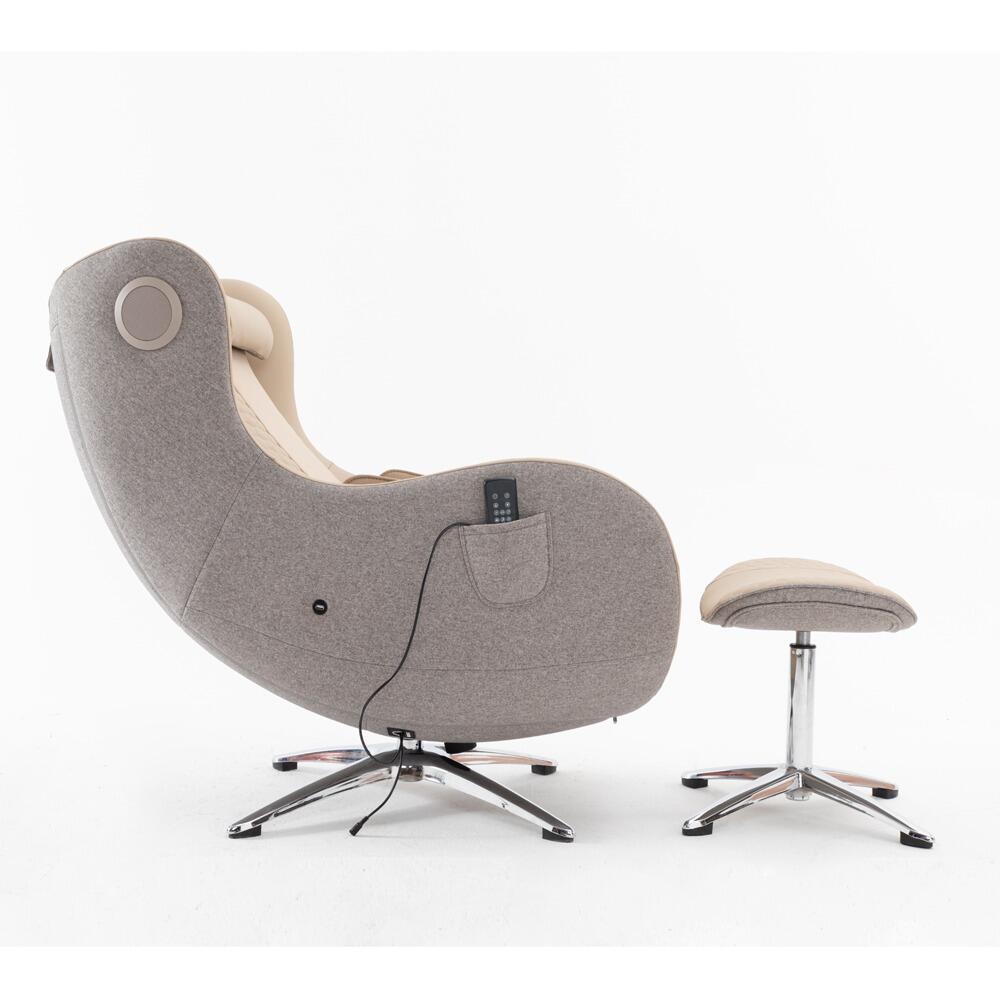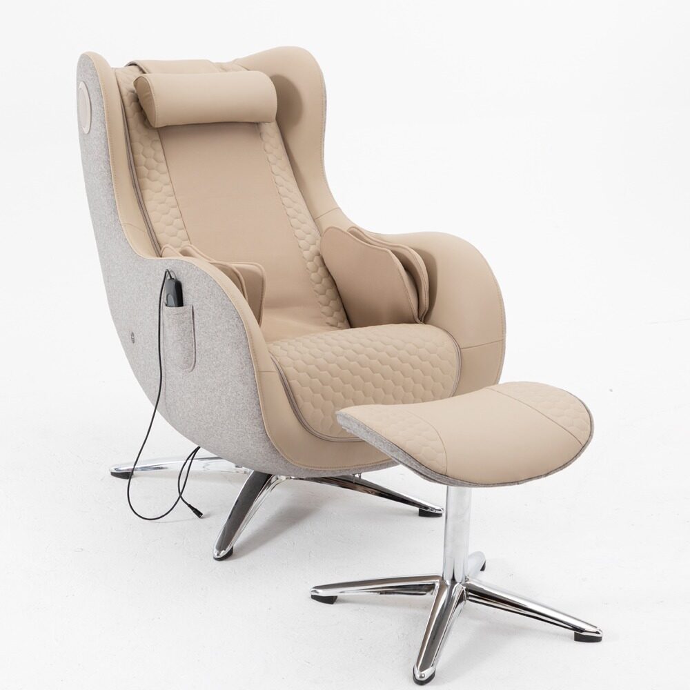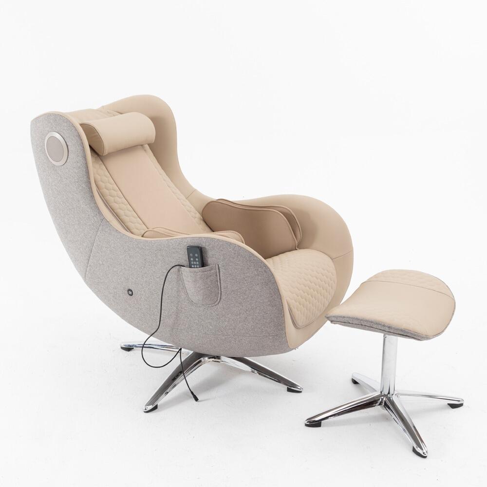 Controlul se face usor, cu ajutorul telecomenzii intuitive amplasate intr-un buzunar lateral. Conectivitatea Bluetooth adauga o nota moderna experientei, permitand redarea de muzica relaxanta direct de pe telefon. Mai mult, baza pivotanta din otel cromat ofera rotatie completa la 360°, pentru un plus de mobilitate si confort.
