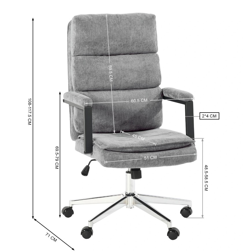 Scaunul US134 are sezutul si spatarul capitonat cu perne moi si tapitat cu material textil catifelat. Baza scaunului este din metal cromat, cu 5 roti din nylon, ce permit o mobilitate usoara pe orice suprafata. Scaunul este prevazut cu cilindru pneumatic de ridicare/coborare si rotire 360 de grade si mecanism tilt care permite balansul.