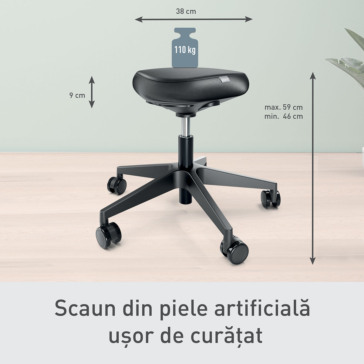 Scaun ergonomic Leitz Ergo, pozitie sezut/ in picioare, inaltime reglabila (46-59 cm), cu roti, sezut fix, negru
