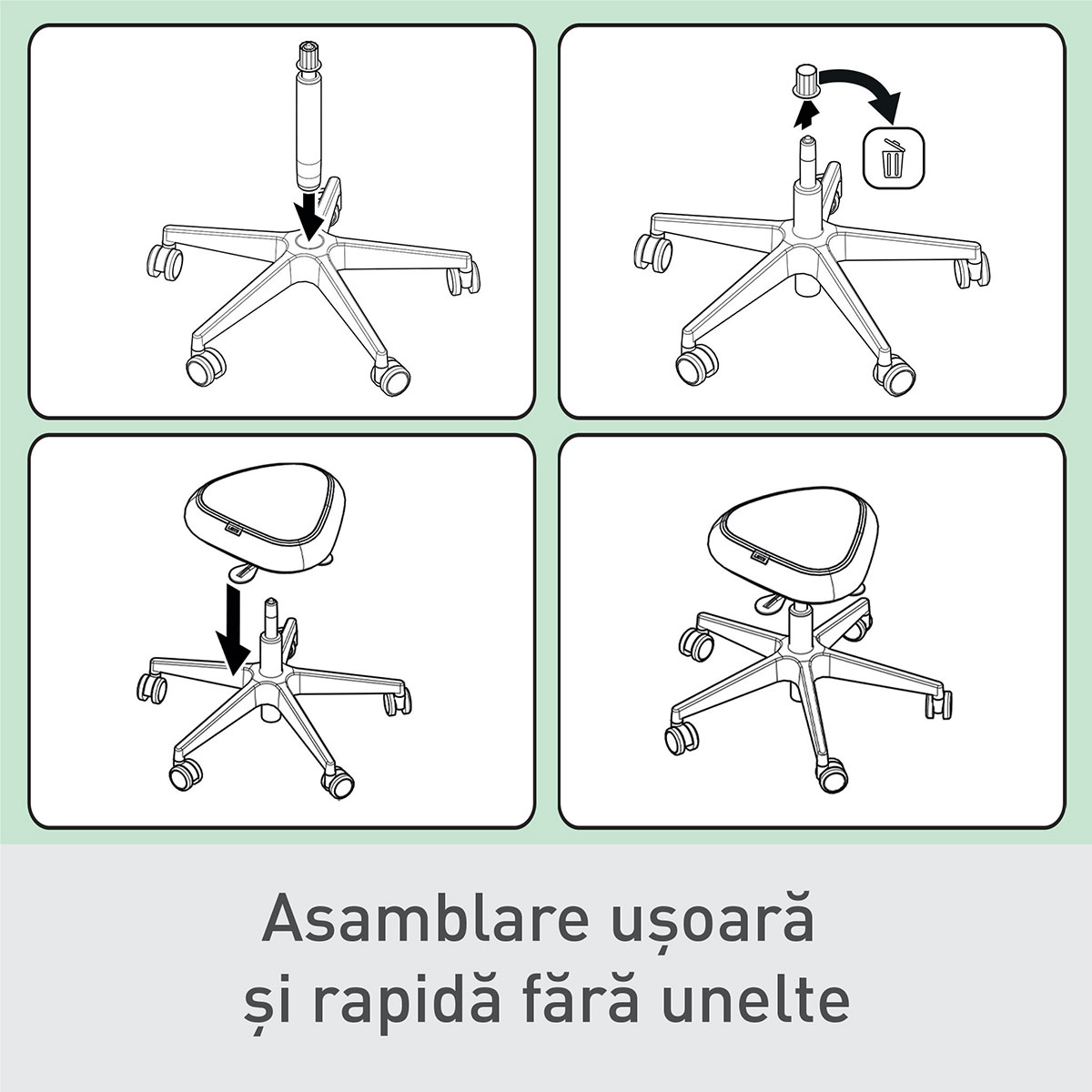 Se montează ușor în doar câțiva pași, fără unelte necesare, ambalaj compact și 100% reciclabil