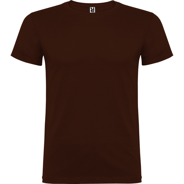Tricou cu maneca scurta ?i guler rotund dublu cu elastan, confectionat din material tubular (fara cusaturi) pentru adulti, culoare maro. Material: 100% bumbac, punct neted, 155 g/m?. Are banda intarita pentru acoperirea cusaturii la guler.
