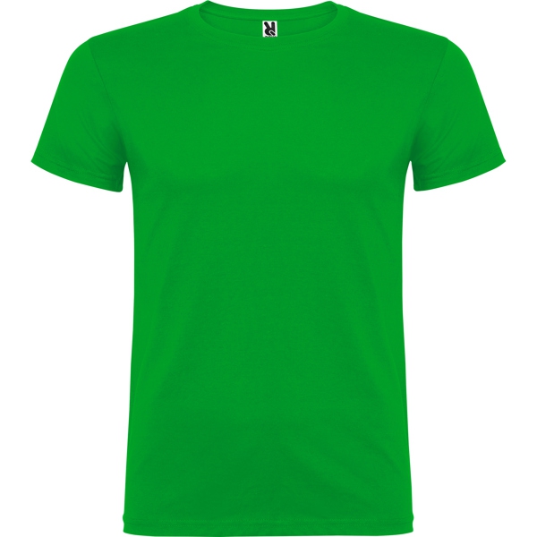 Tricou cu maneca scurta ?i guler rotund dublu cu elastan, confectionat din material tubular (fara cusaturi) pentru adulti, culoare verde iarba. Material: 100% bumbac, punct neted, 155 g/m?. Are banda intarita pentru acoperirea cusaturii la guler.