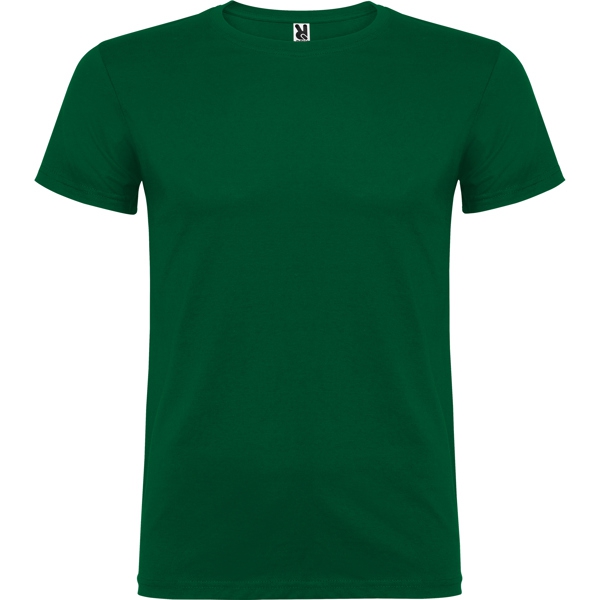 Tricou cu maneca scurta ?i guler rotund dublu cu elastan, confectionat din material tubular (fara cusaturi) pentru adulti, culoare verde inchis. Material: 100% bumbac, punct neted, 155 g/m?. Are banda intarita pentru acoperirea cusaturii la guler.