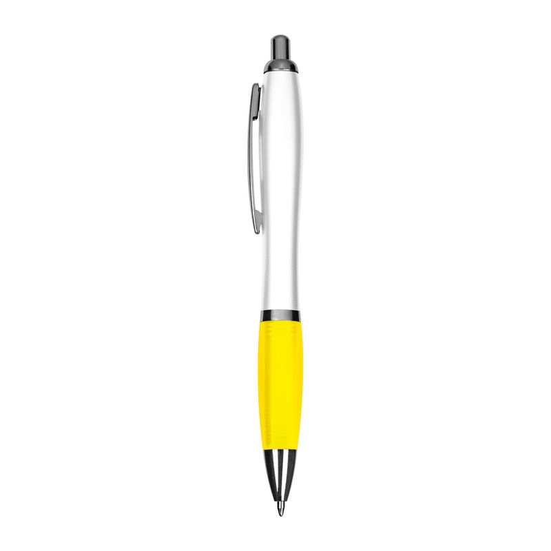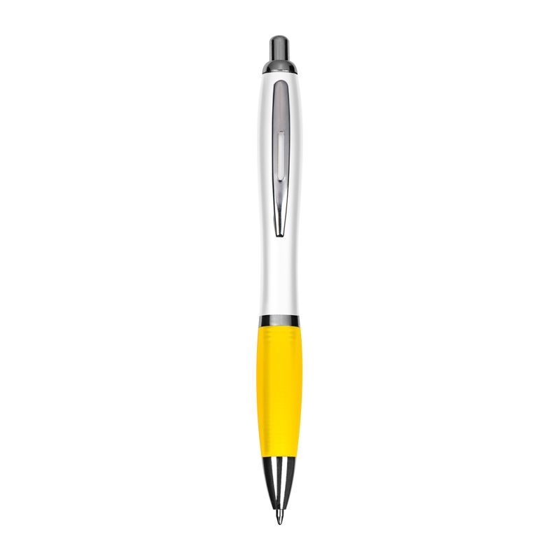 Pix alb din plastic cu clips metalic grip autoalunecare galben mina albastra