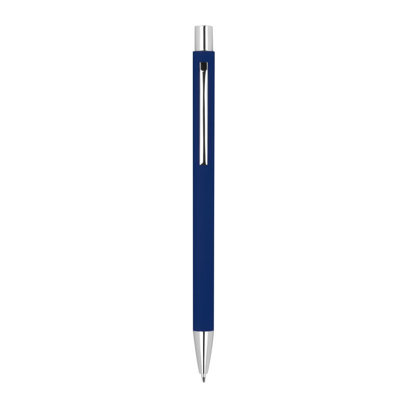 Pix metalic cauciucat subtire cu buton albastru inchis mina albastra