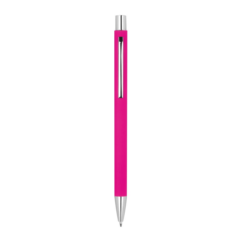 Pix metalic cauciucat, subtire, cu buton roz, mina albastra