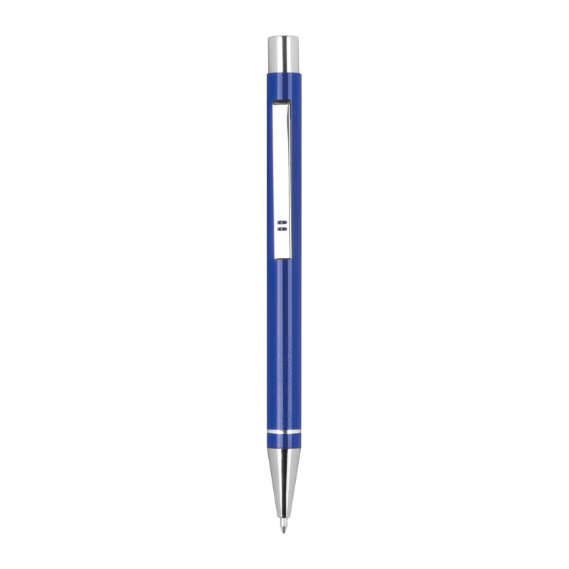 Pix albastru cu bila metalica din aluminiu cu o rezerva de cerneala semi-gel albastru varf de 1 mm si zona de prindere cu nervuri