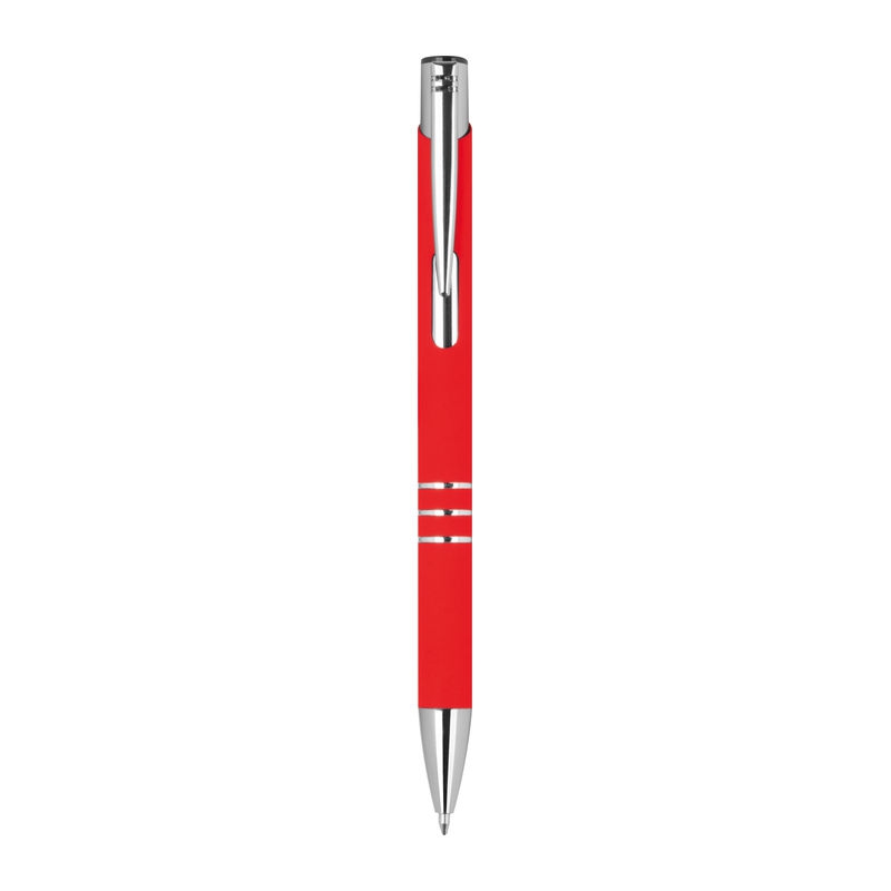 Pix din aluminiu reciclat rosu cu suprafata cauciucata si trei inele decorative mina semigel de culoare albastra 0 7mm