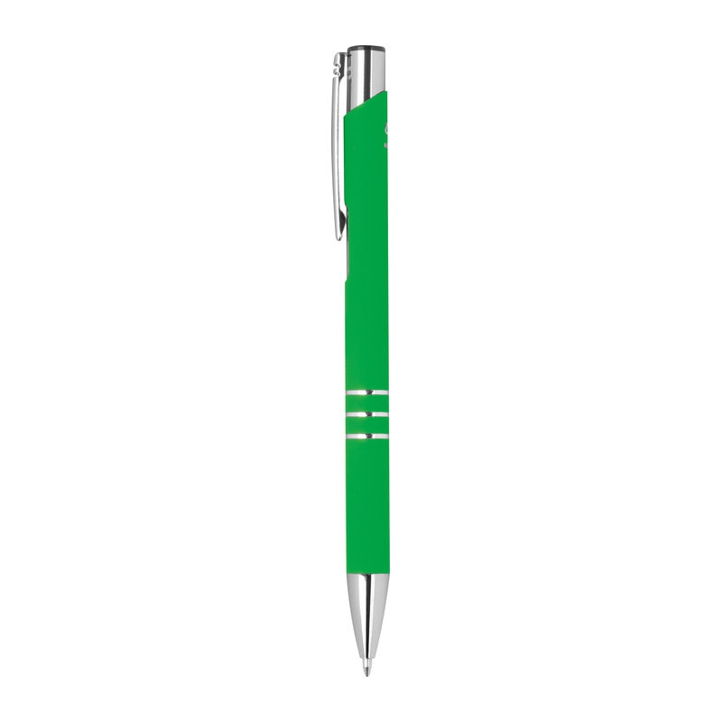 Pix din aluminiu reciclat verde cu suprafata cauciucata si trei inele decorative mina semigel de culoare albastra 0 7mm