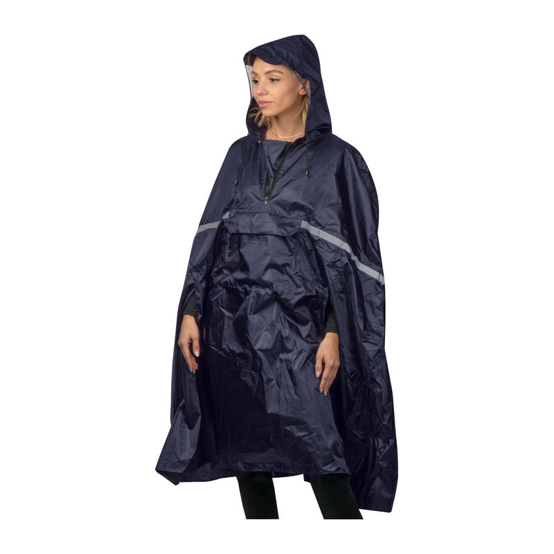 Poncho de ploaie repliabil cu dungi reflectorizante si snur pentru gluga