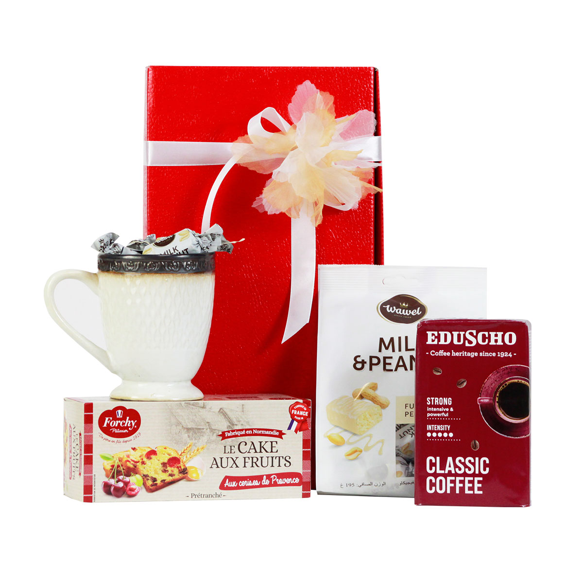 • Cutie festiva Chec cu fructe confiate Forchy 275g Trufe ciocolata lapte cu alune Wawel 195g Cafea macinata Eduscho 250g Cana ceramica diverse sortimente
