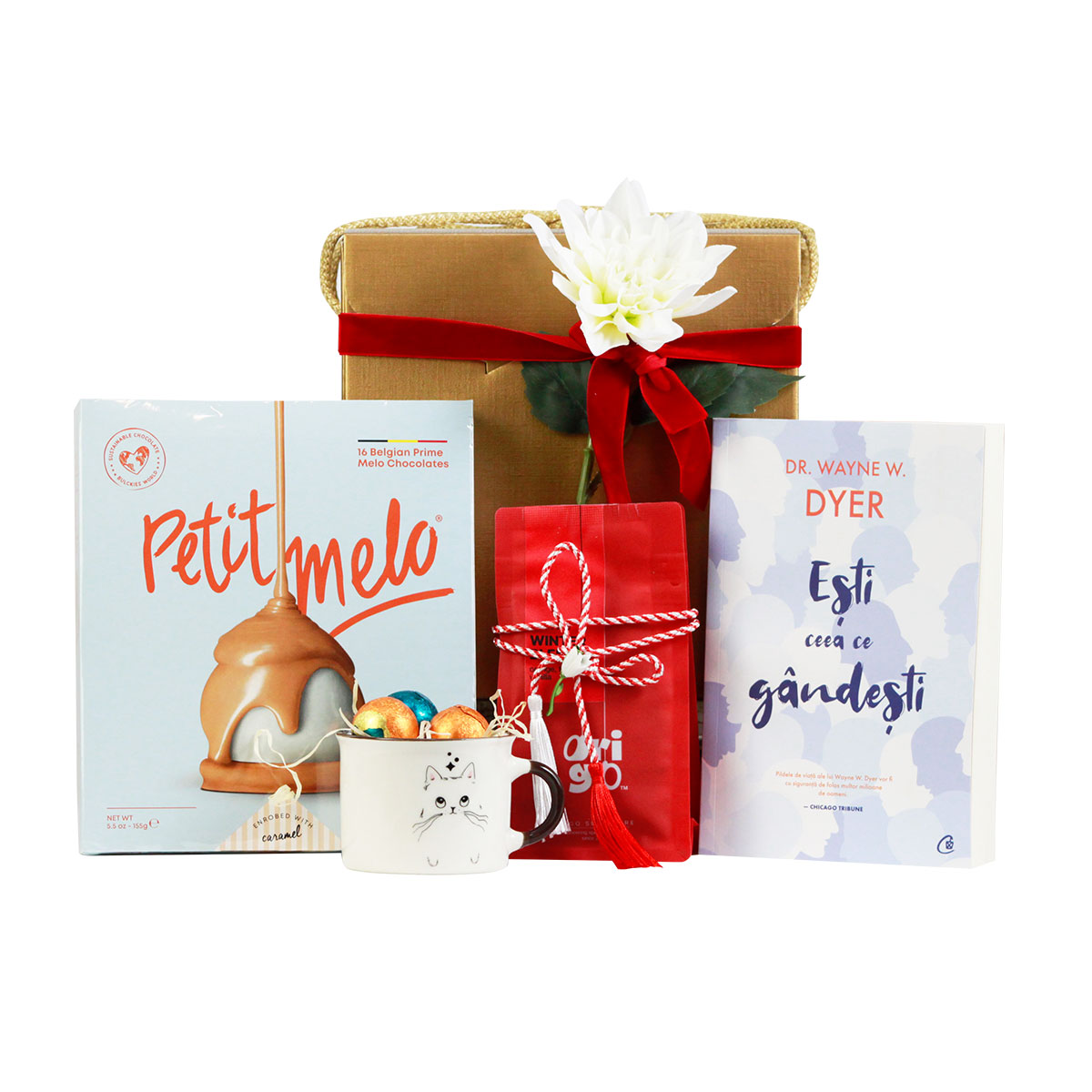 • Cutie decorata festiv Praline belgiene Petit Melo 155g Cafea origini Origo 100g Ceasca portelan Praline diverse sortimente Mozart Koogles 51g Carte dezvoltare personala