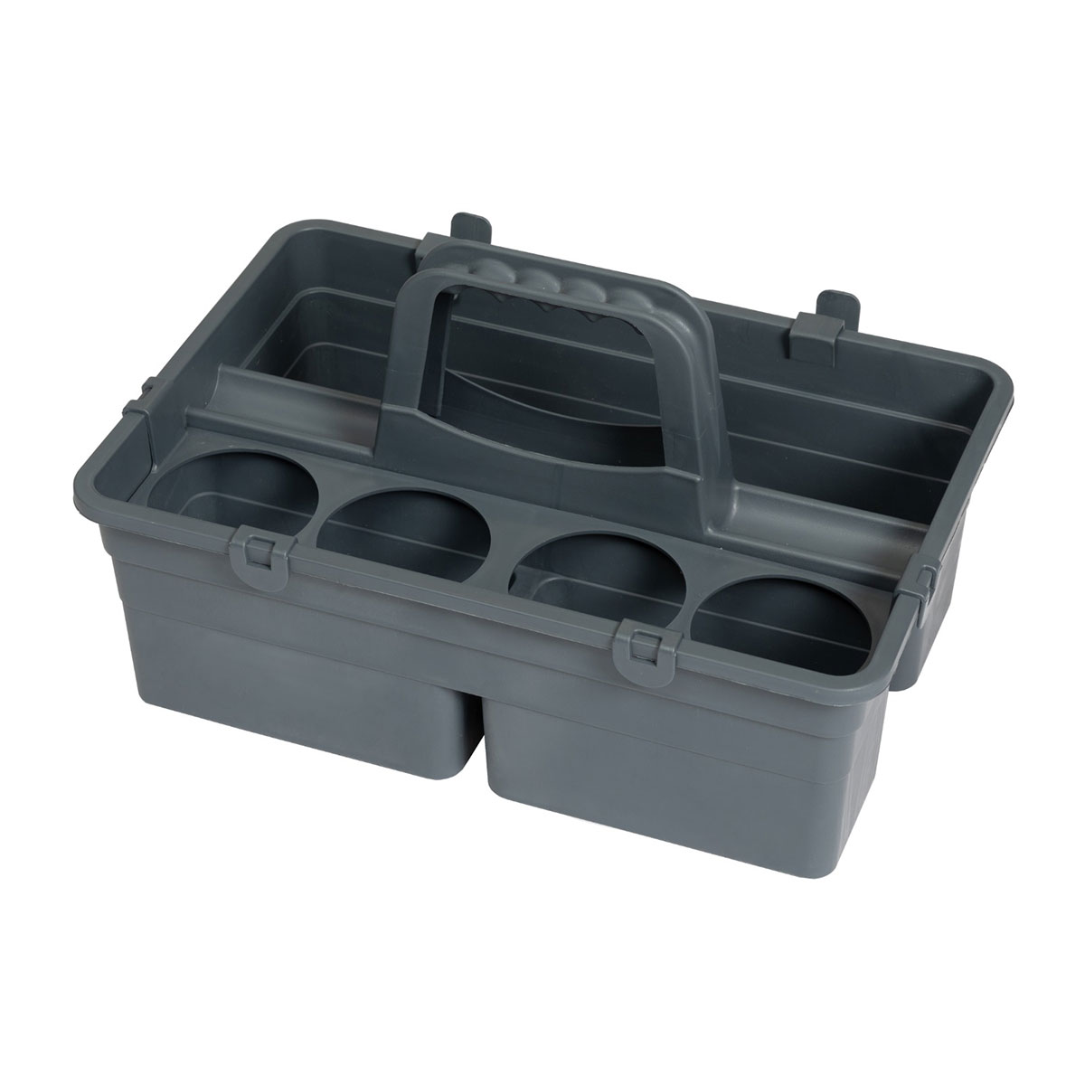 Suportul profesional pentru curatenie este ideal pentru spatii mici, cu 3 compartimente circulare si 1 compartiment dreptunghiular, perfect pentru transportul detergentilor si ustensilelor in hoteluri, birouri, cabinete sau sali de curs.