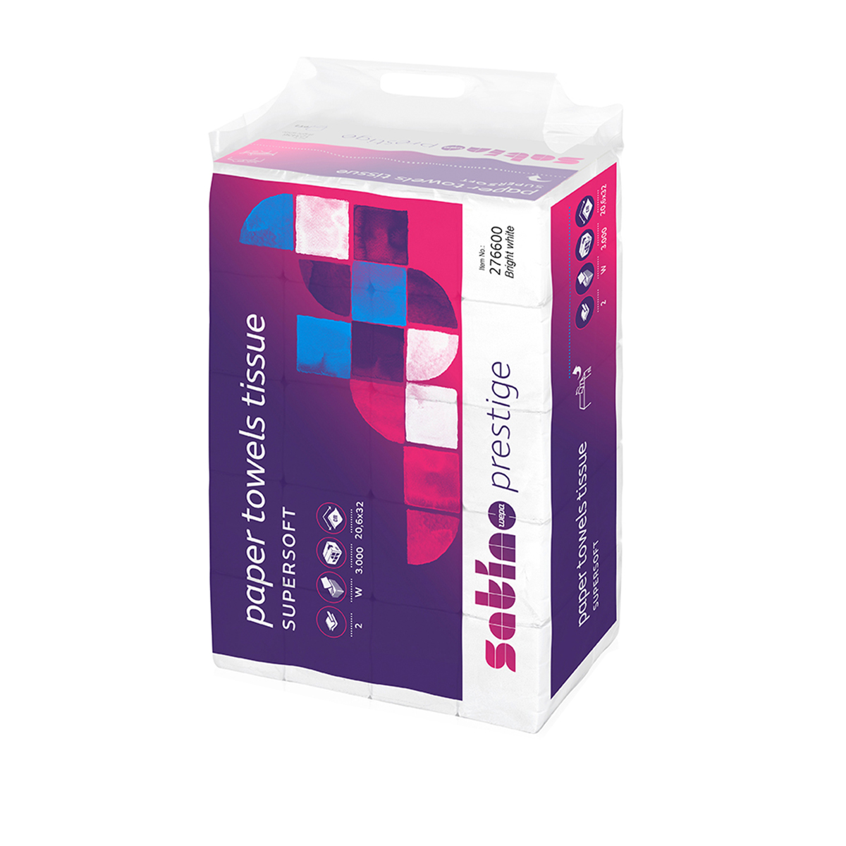Aceste prosoape de hartie pliate, fabricate 100% din celuloza pura, ofera performante excelente de curatare si absorbtie. Culoarea alb stralucitor si embosarea tip Diamond asigura o experienta premium, fiind ideale pentru utilizare in spatii profesionale sau publice.