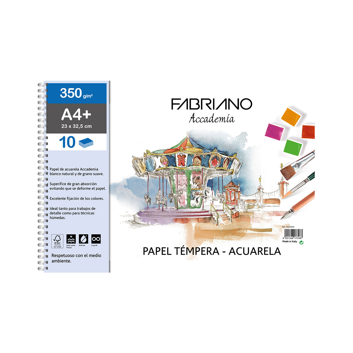 Bloc de hartie Fabriano special conceput pentru pictura in tempera, cu gramaj de 350 g/mp si rezistenta ridicata la umezeala. Suprafata robusta permite aplicarea culorilor fara ondulare excesiva. Recomandat pentru tempera, guase si tehnici umede. Produs certificat FSC.