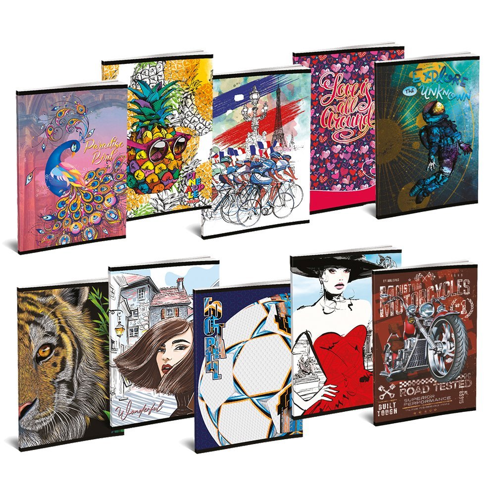 Dimensiuni: 147 x 210 mm. Interior 52 file, hartie de 80 gr/mp, liniatura in culoare gri, fara margini. Prima si ultima foaie din interior este Artpaper 150g, tiparit in culori 4/4.Coperta din carton 300 g/mp, laminare mata si lac UV. Diverse modele.